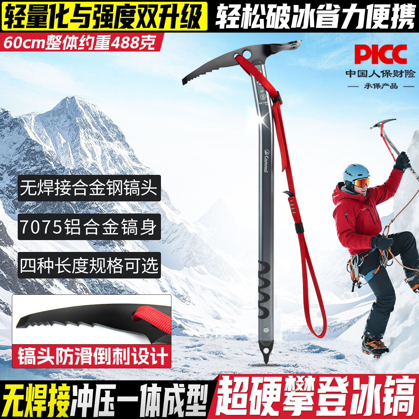 坎乐户外冰镐攀冰铲头冰斧冰锤登山镐洋镐小锄头行走多用器材装备