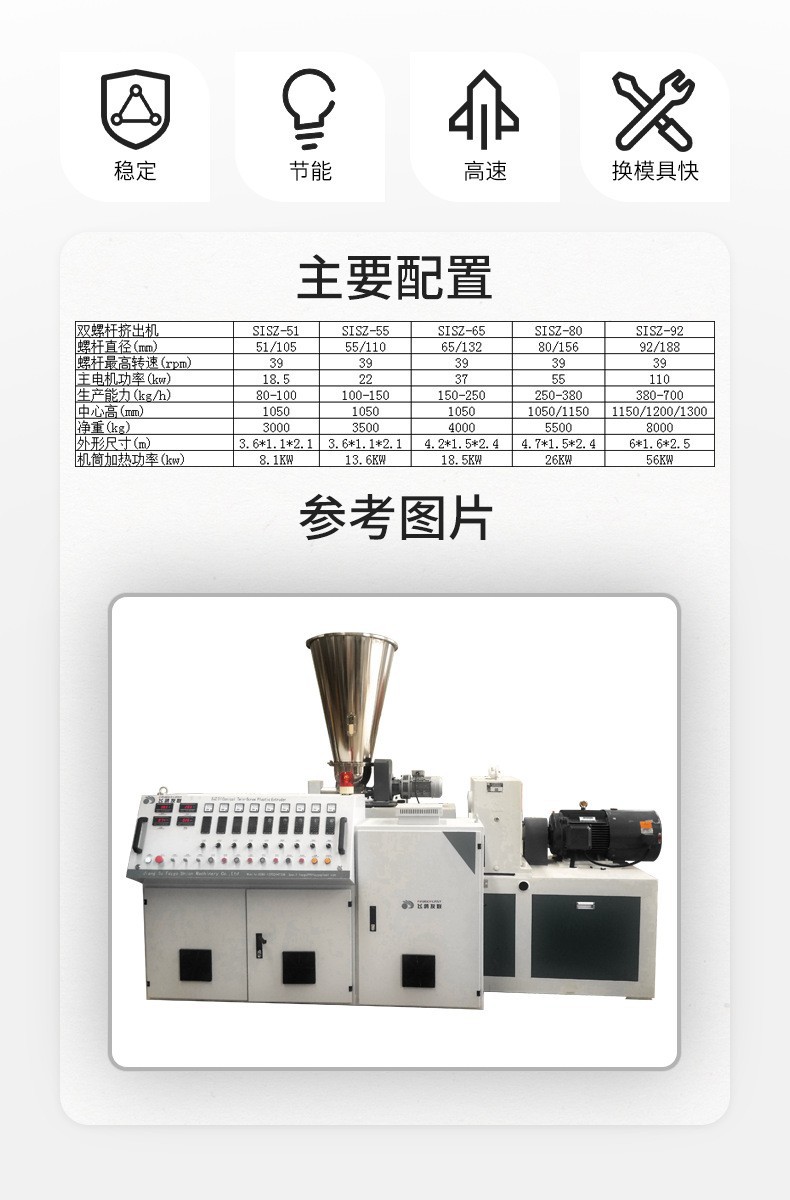 现货PE管材挤出机生产线节能型制造设备双螺杆PE管材生产设备