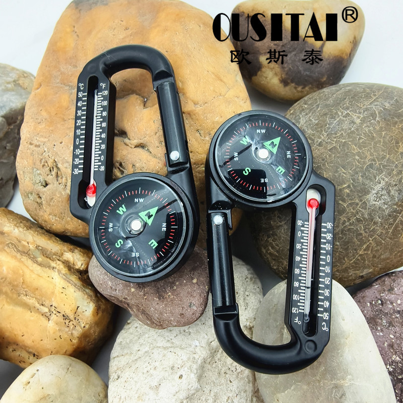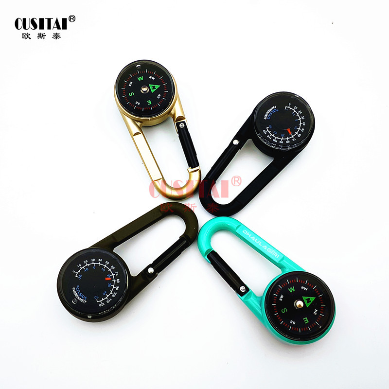 欧斯泰DC27T-1W両面温度計コンパス亜鉛合金登山ボタン鍵フック指北針