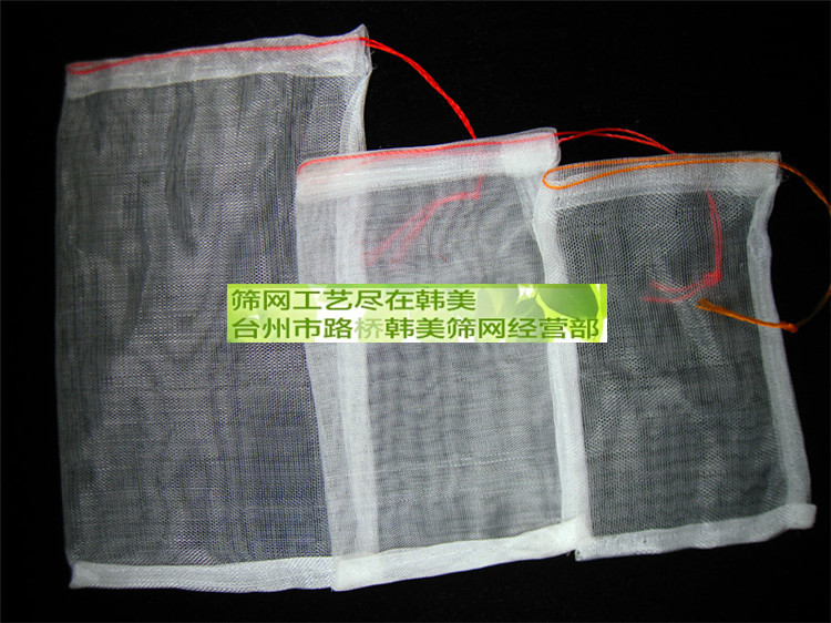 尼龙网袋,默认40目(孔约1毫米),袋口配有尼龙绳。特殊规格可定做。