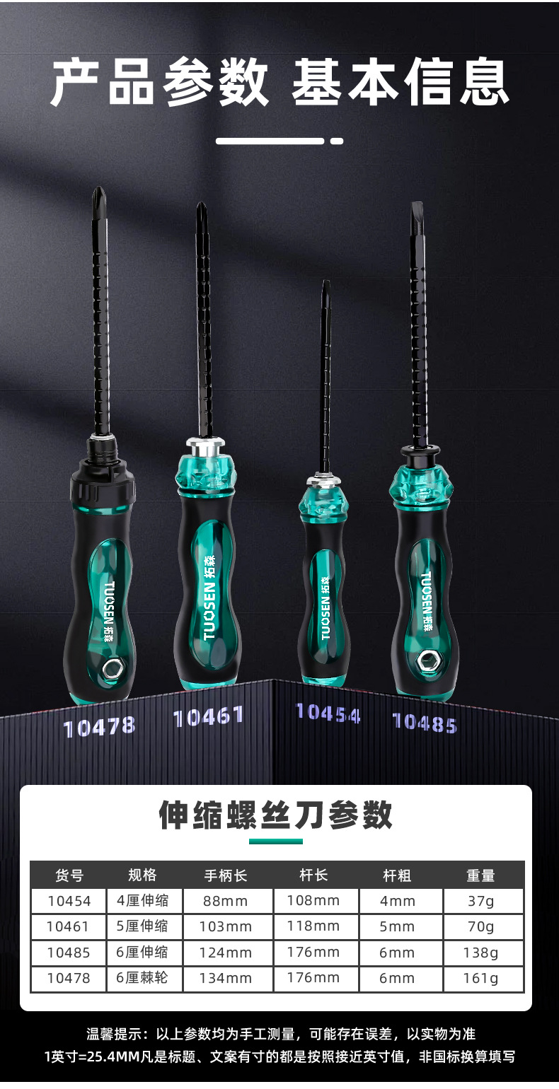 拓森工具卸売り手動修理ドライバー一字十字ドライバー伸縮両用ドライバー