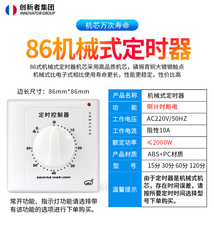 機械式タイマースイッチコントローラー 220V86型パネル自動電源オフウォーターポンプ機械式自動カウントダウン