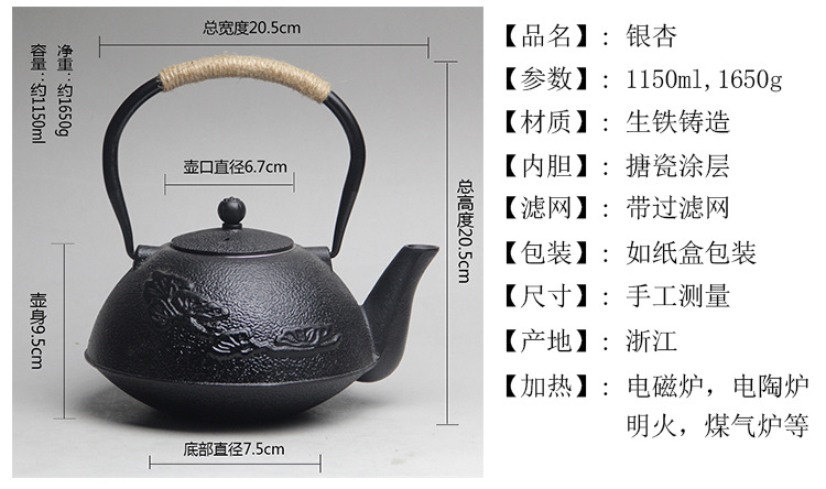 1200mlの銀杏の手作りの鋳鉄の壺はお茶をかけて水を沸かします。