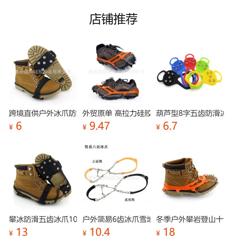 户外冰爪防滑鞋套 雪地攀岩装备雪爪 登山鞋5齿简易冰爪 出跨境