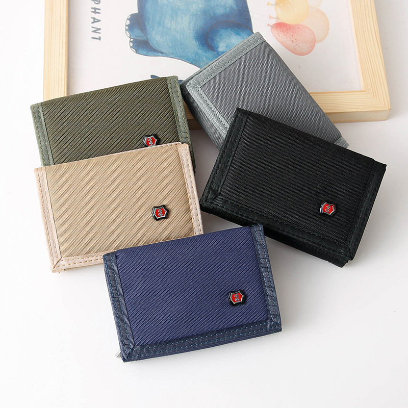 外国貿易速売通ソース男性財布の短い三つ折りキャンバス学生カードバッグ国境を越えた財布銀バッグ