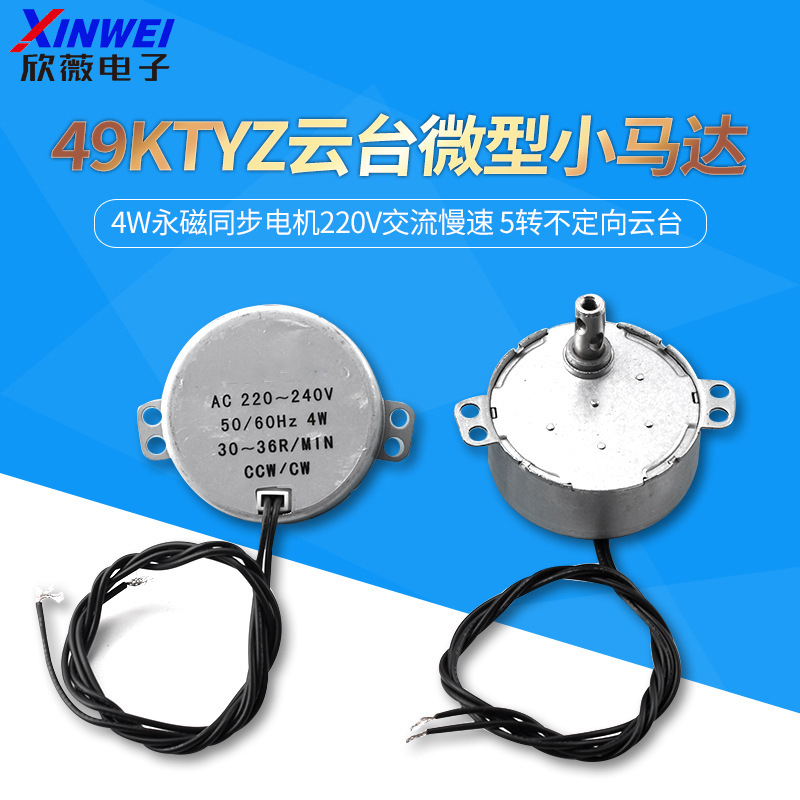 4W,寿命长,适用范围广,常用电源电压AC6V、9V、12V、24V、110V、220V,转速有每分钟1.4R、2R、3R、4R、5R、8R、10R、15R、20R、30R、50R、60R,转速越小扭力越大,特殊输出轴可订做。