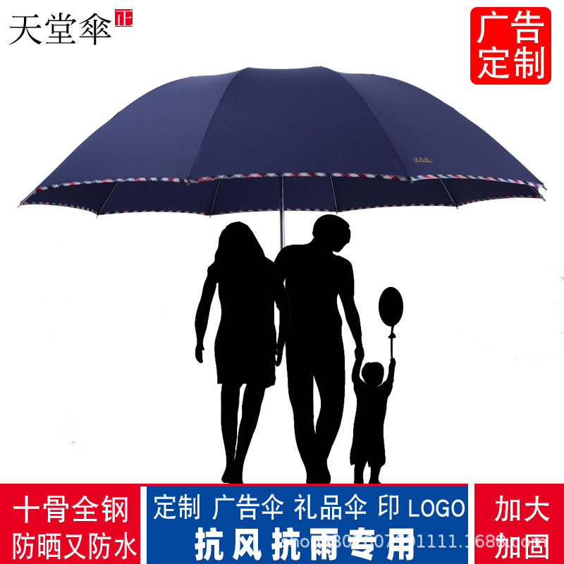 天堂伞加大加固三人晴雨两用折叠商务雨伞广告伞批发印刷logo