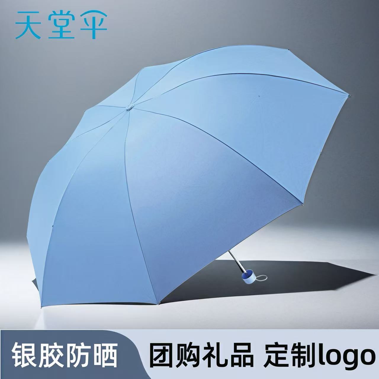 天国傘336t銀ゴム日傘三折り畳み紫外線防止晴れ傘はロゴ広告傘を印刷して印字することができる