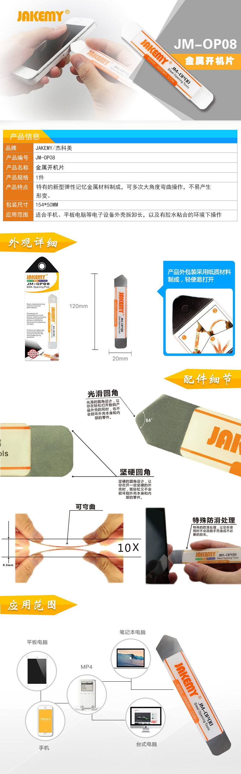 JM-OP08バール携帯電話画面オープンツールタブレット金属バール靭性ダブルヘッド分解機