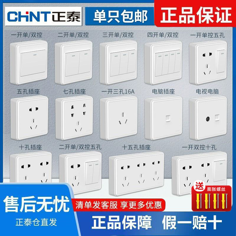 正泰スイッチソケットメーカー卸売り壁スイッチパネル86型白色斜五穴ソケット三穴エアコン