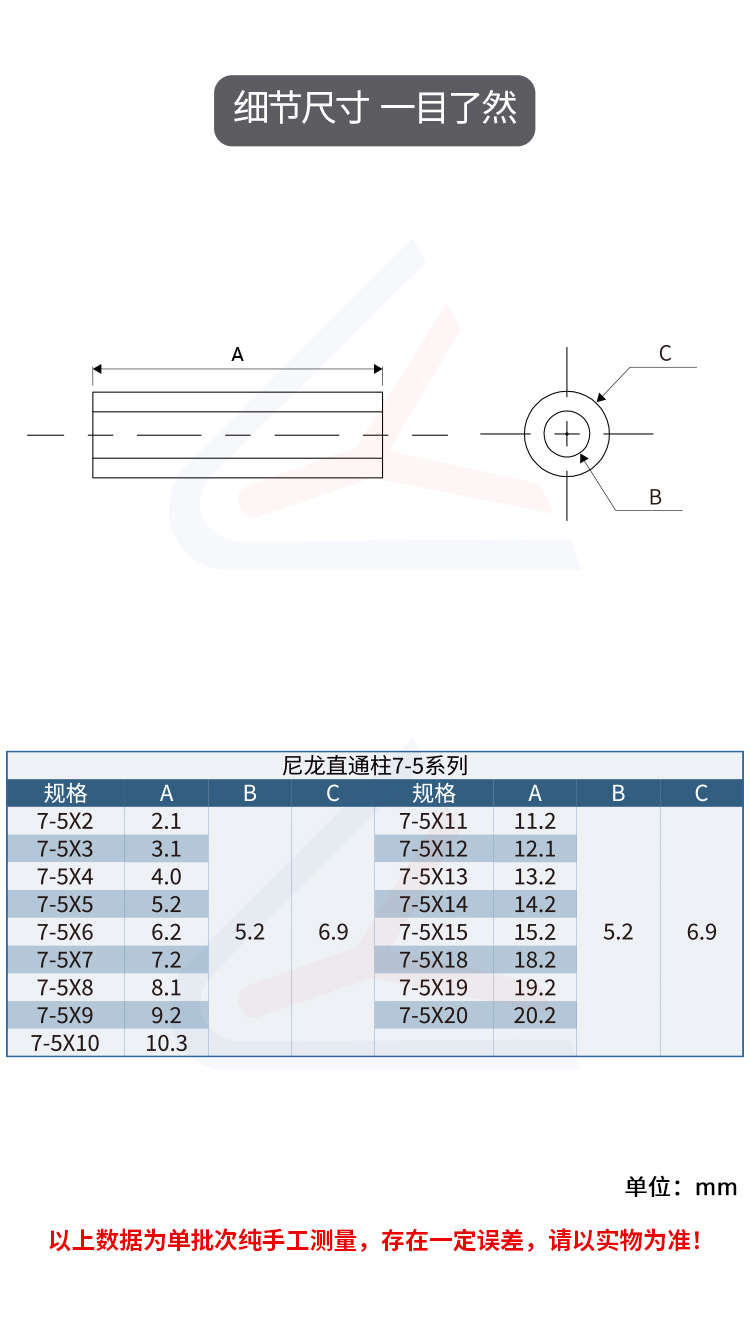 聯陽7-5ナイロン支柱 直通支柱 中空間隔支柱 プラスチック高さ調整支柱 丸型分離支柱 絶縁支柱