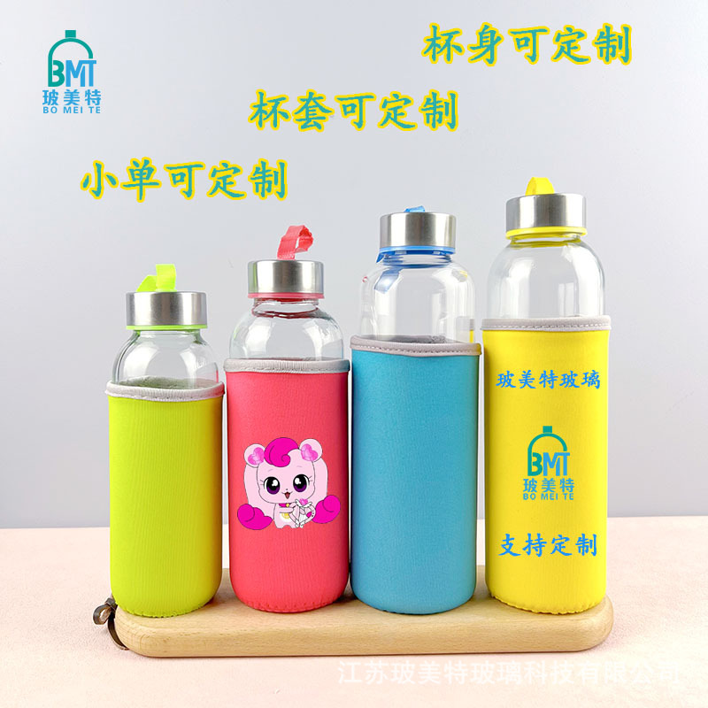 メーカー直販高ホウケイ酸ガラス運動コップ小口径高ホウケイ酸ガラス水筒付き抗熱カップカバー