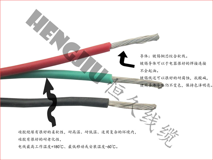 产品名称:耐高温硅胶绝缘多股镀锡软电线