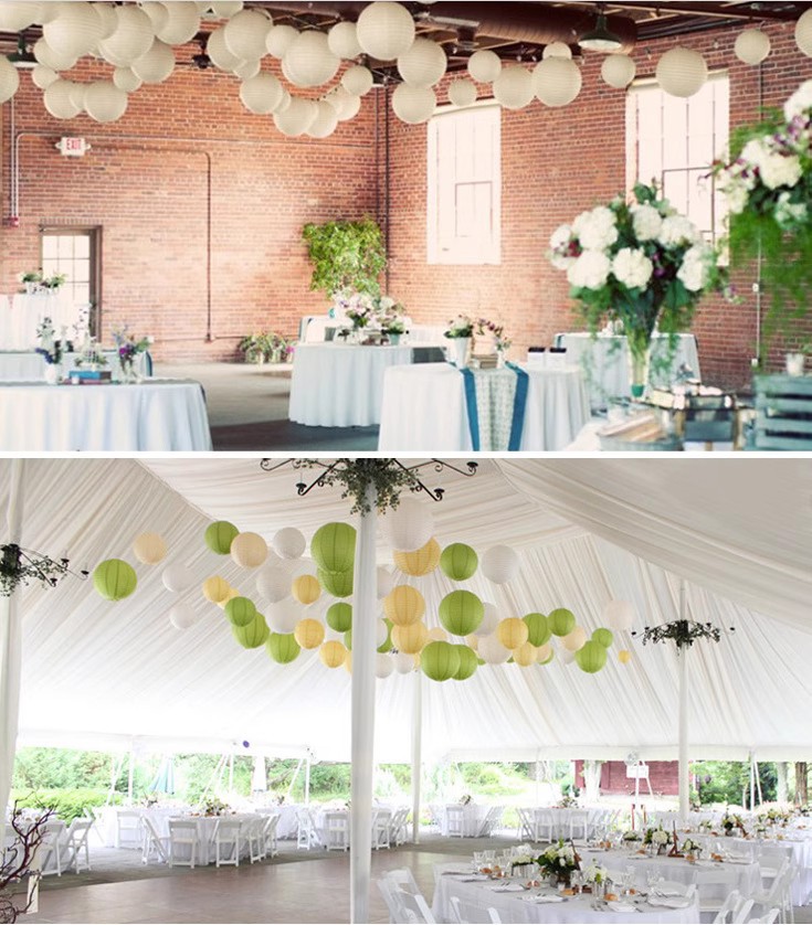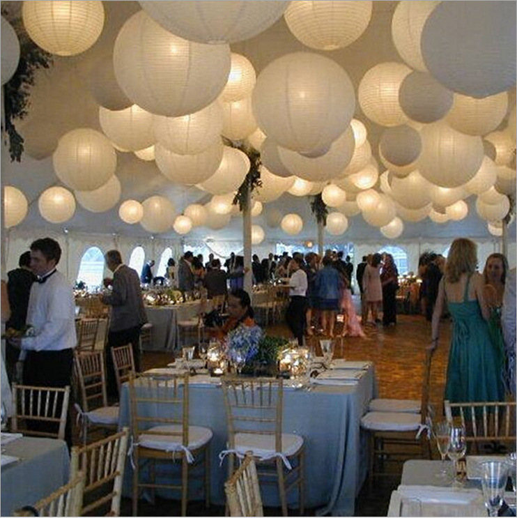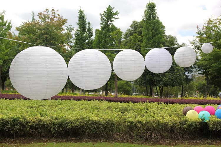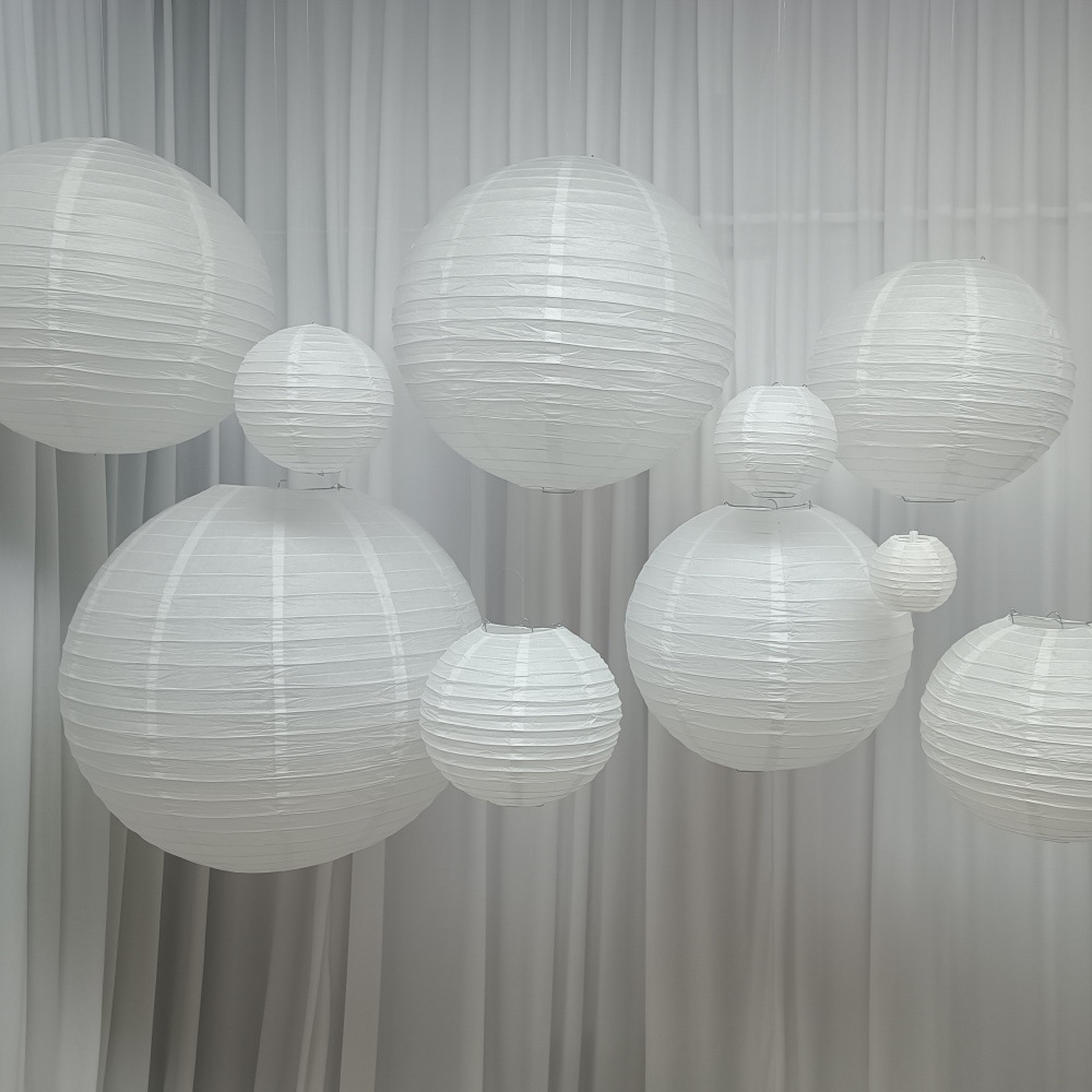 跨境纯白色圆形灯笼婚庆婚礼教堂派对氛围布置DIY手工绘画纸灯笼