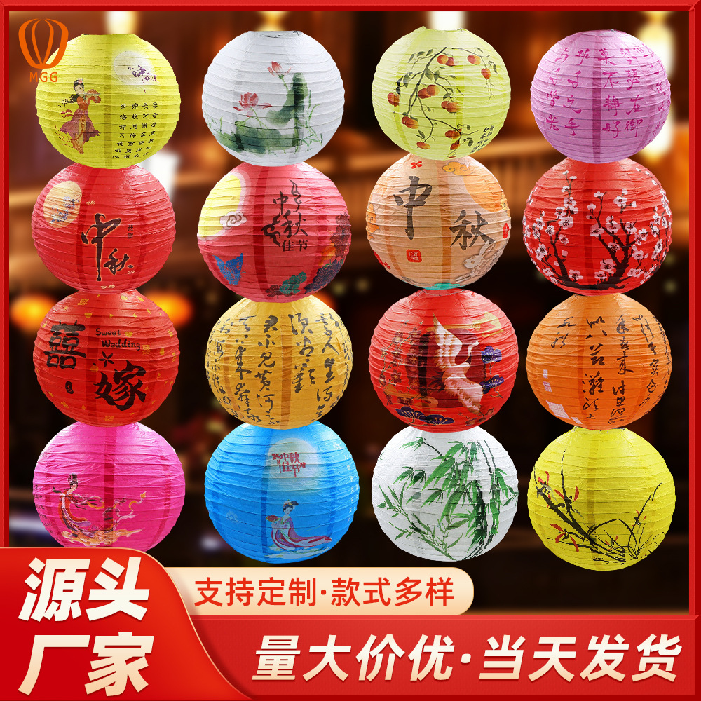 メーカー卸売り白色円形紙提灯結婚祝い赤提灯児童絵画diy提灯対外貿易国境を越えた紙灯