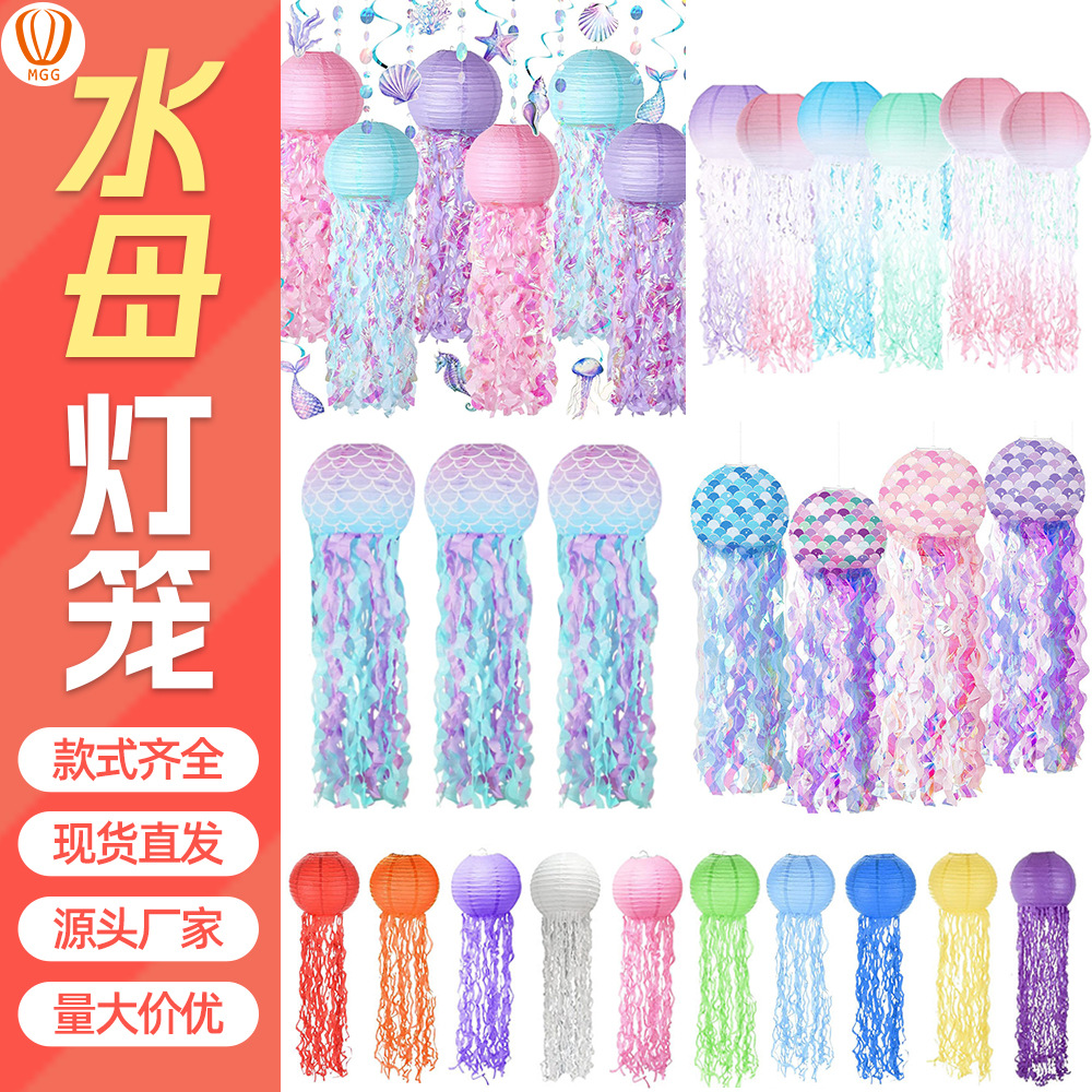 パーティー教室ランタン人魚クラゲカラフルパーティー海中マーメイド紙ランプ吊り下げランプ用品誕生日