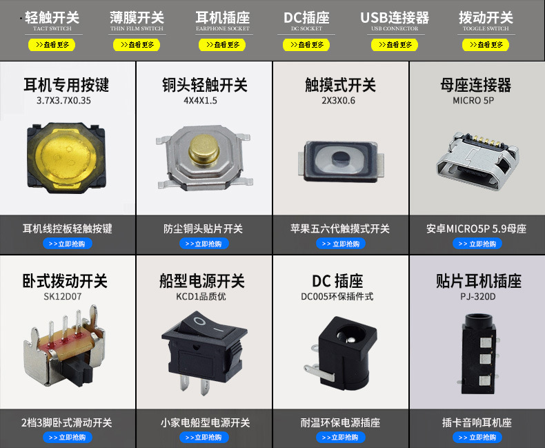 TS-018側押しタッチスイッチ2*4*3.5半包小貝小側ボタンm165 bluetoothヘッドホンスイッチ