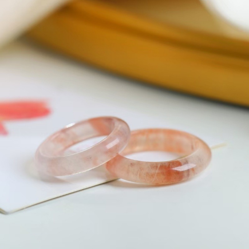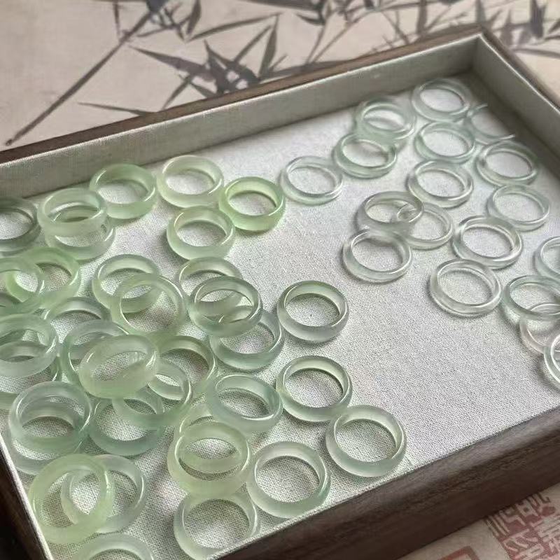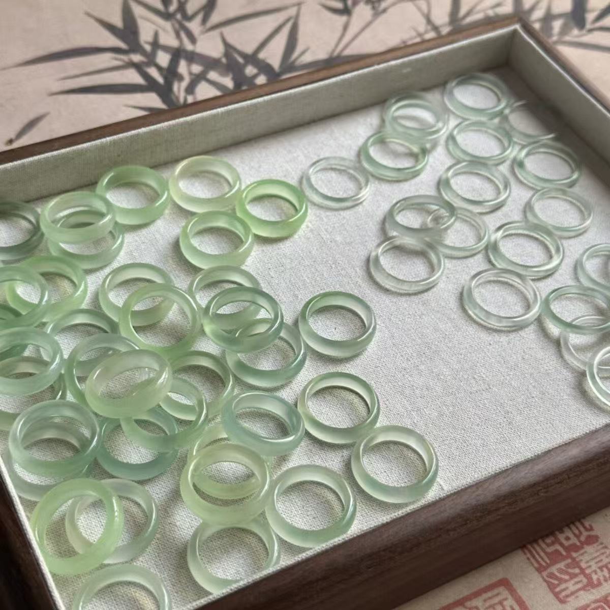 素圈马料戒指白冰天然高冰马达加斯加玉髓戒指细戒圈指环时尚饰品