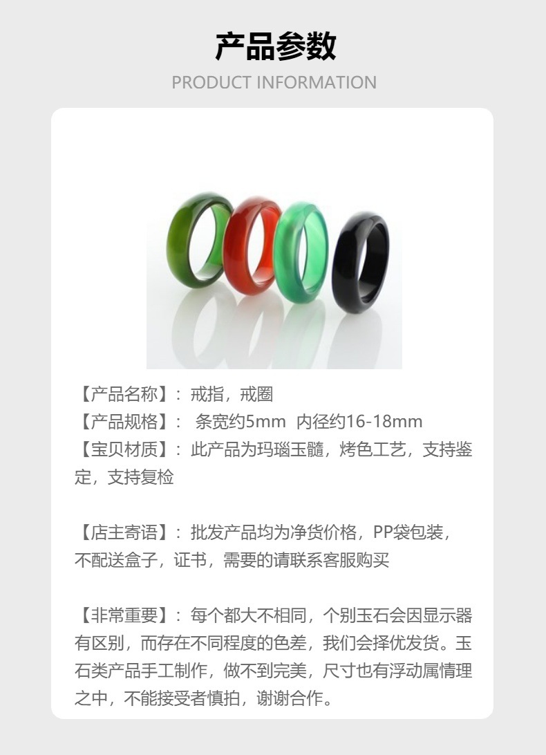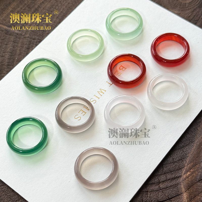 天然巴西玛瑙戒指戒圈手持跑环玉石玉髓指环对戒玉器直播福利