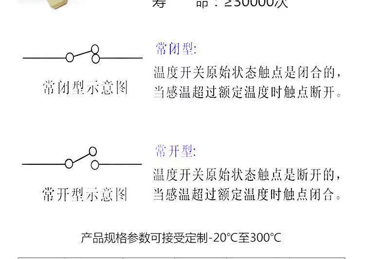 (9) 接点形式:常闭型:温度上升,触点断开,温度下降,触点接通;