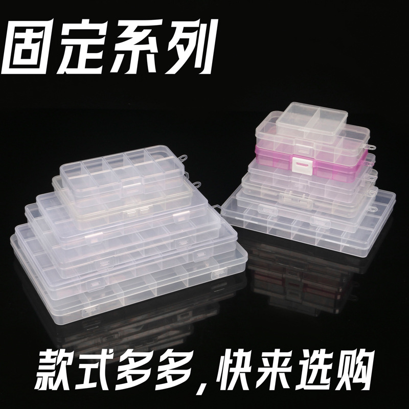 透明固定10格15格24格pp塑料盒饰品串珠蜡粒包装盒美甲纽扣收纳盒
