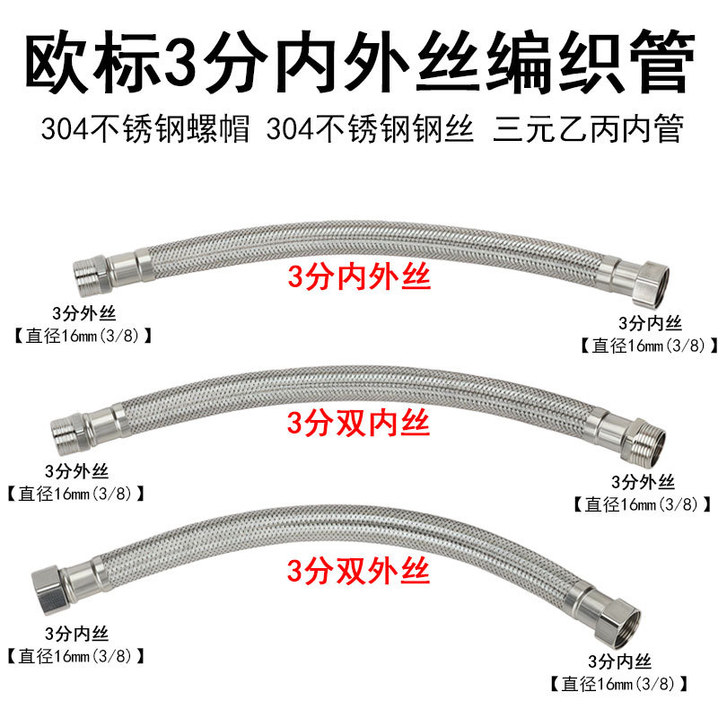 欧标3分内外丝不锈钢编织管转换管3分延长进水管3/8外丝金属软管