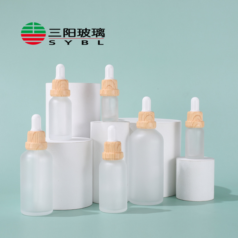 30mlスポイトボトル茶色フラット肩エッセンシャルオイルボトル透明原液ボトルエッセンシャルオイルボトル透明つや消しガラス瓶