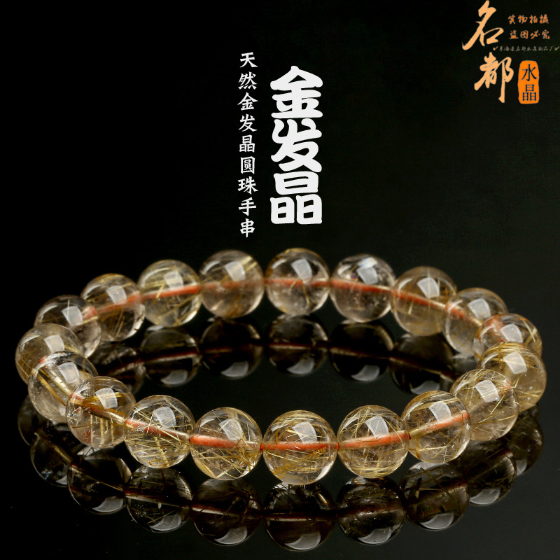 这款是天然发晶表面有炒蜡处理,佩戴可能会有轻微褪色现象是正常的,介意勿拍!