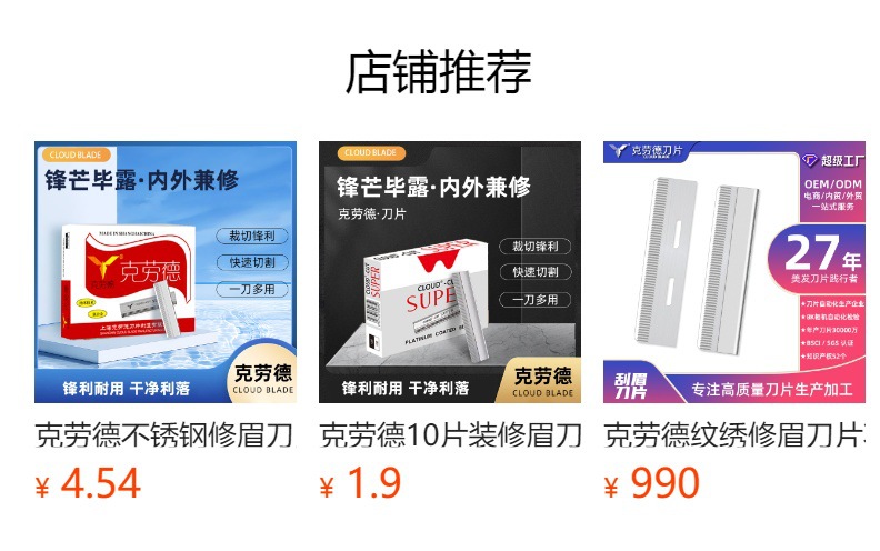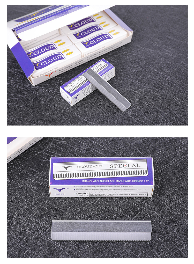 クロードのステンレスは眉の刃を修理します。美容院の羽は眉を剃って毛を剃ります。使い捨ての片面の刃は10枚入りです。