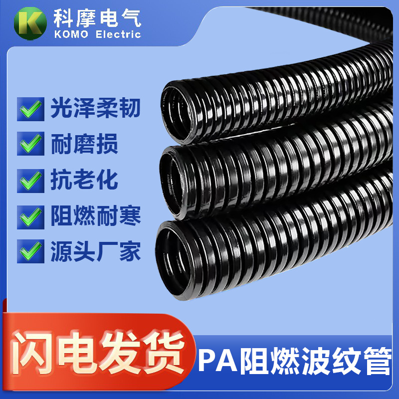 メーカー卸売耐摩耗性、耐高温性、難燃性PA波形パイプ、絶縁ナイロン波形パイプ、耐ねじり性、耐圧性