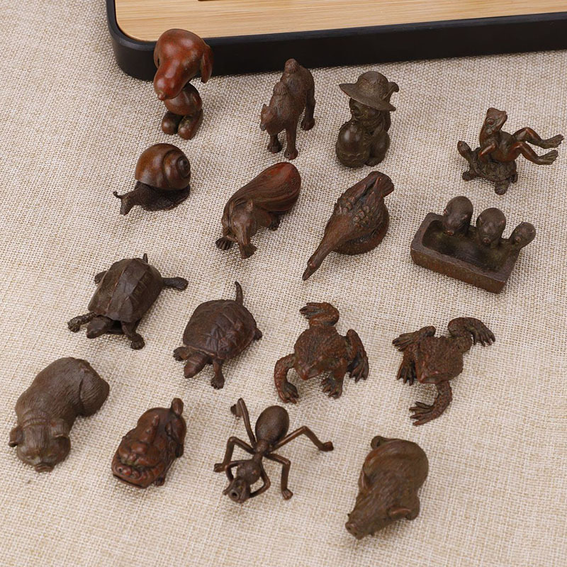 銅芸の小さいお茶はかわいがって古い日本式の置物の純粋な銅製の中実を作って鉄の壺の部品のカメのアリの3小さいブタを飾ります。