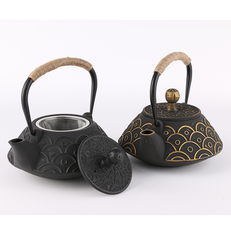 新型日本式茶釜 日本魚鱗模様鋳鉄茶釜 家庭用鋳鉄釜 鋳鉄茶釜 0.9L メーカー供給