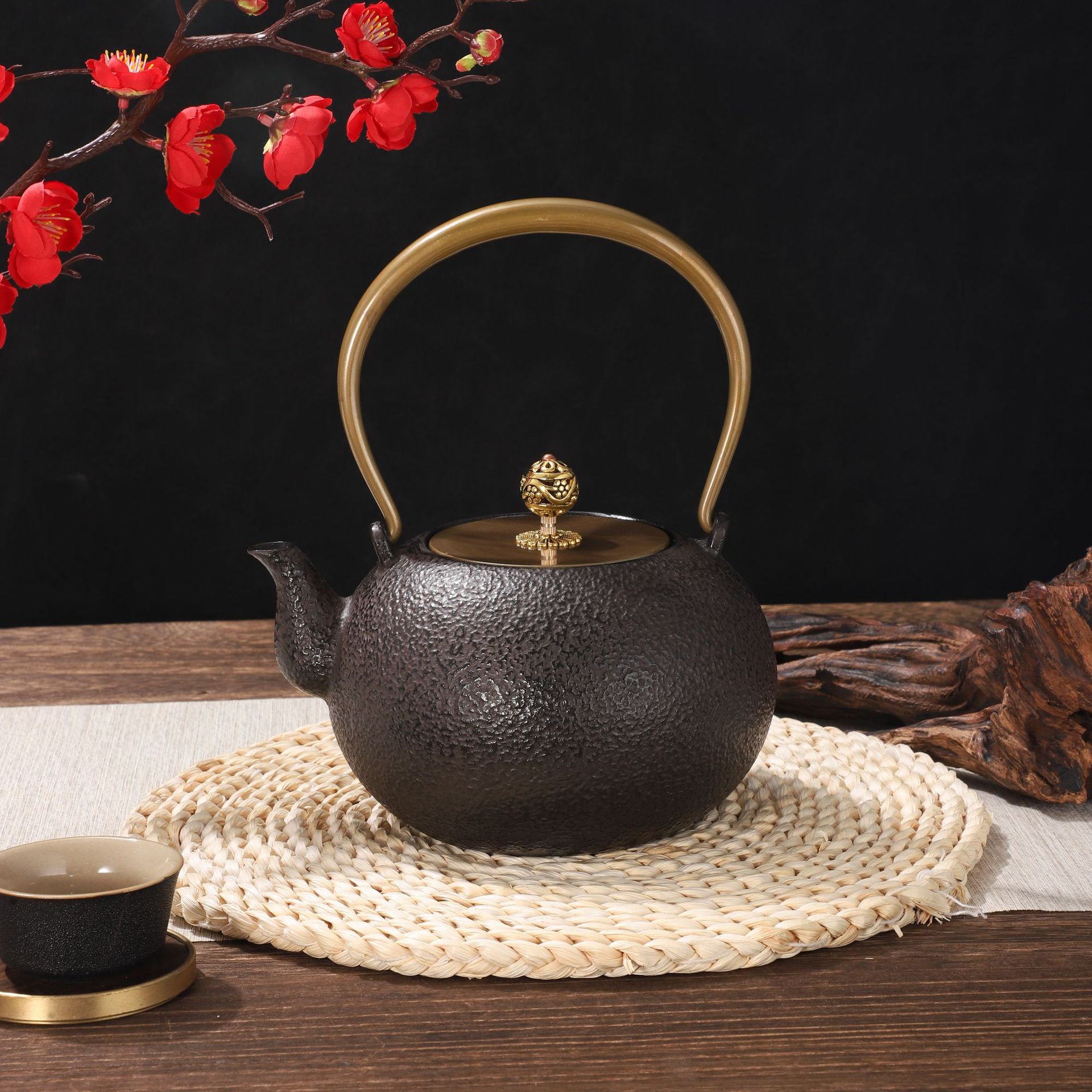 氷裂金ティーポット提梁囲壷煮茶道具茶和式クリーム風ハンマーティーポット野炊事家庭用鋳鉄ティーポット