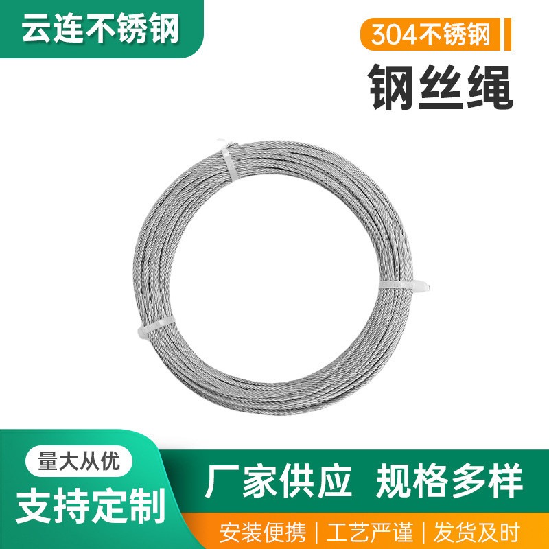 雲連ワイヤーロープ干しロープ304ステンレスワイヤーロープ5mm 7*19工場直接供給