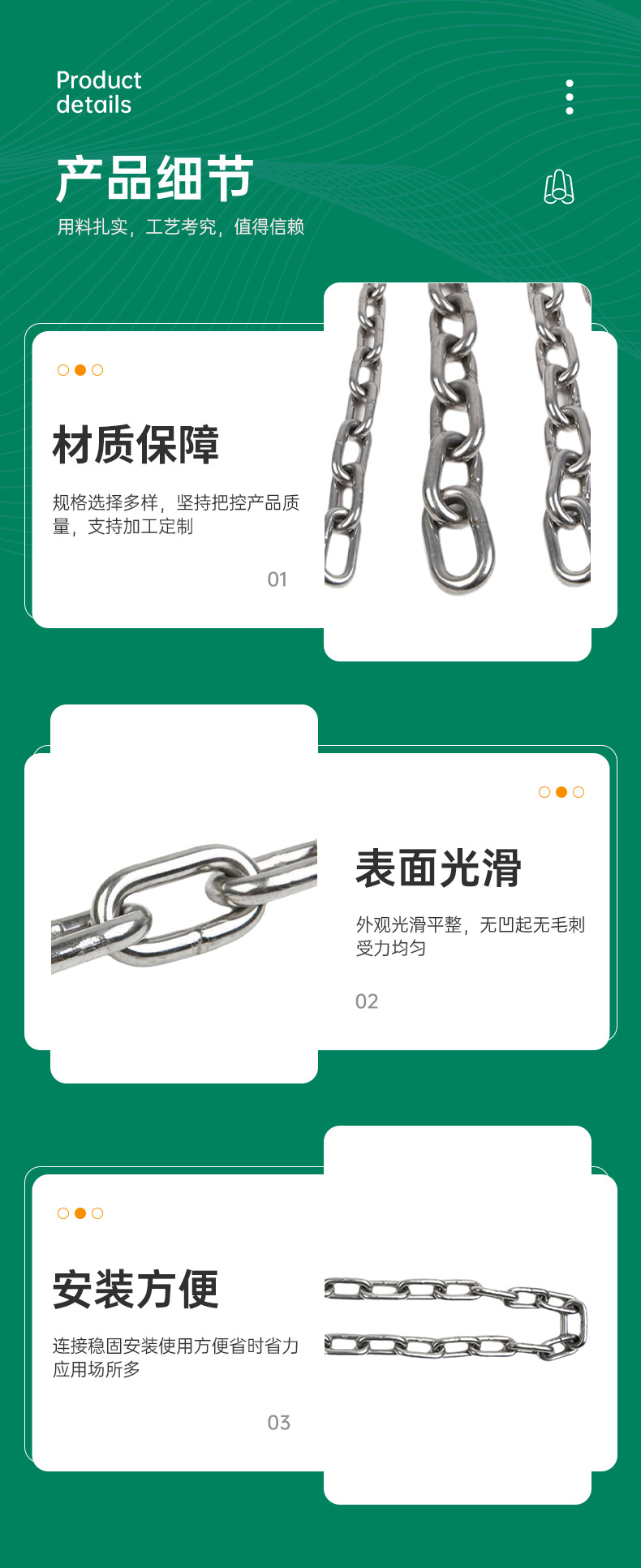 304ステンレス鋼チェーン3mm丸環ガードレールチェーン吊り上げチェーン装飾チェーンアンカーチェーン耐荷重チェーン吊りチェーン