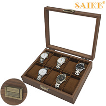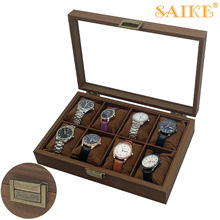 【名称】:复古版黑胡桃纹木质高档10位手表收纳展示盒礼品盒