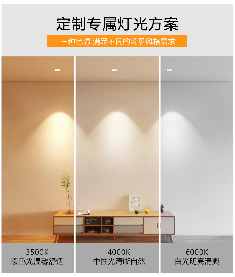 三本松led三色変光ダウンライトホテル客室超薄防霧ダウンライトled埋め込み式家庭用天井ライト
