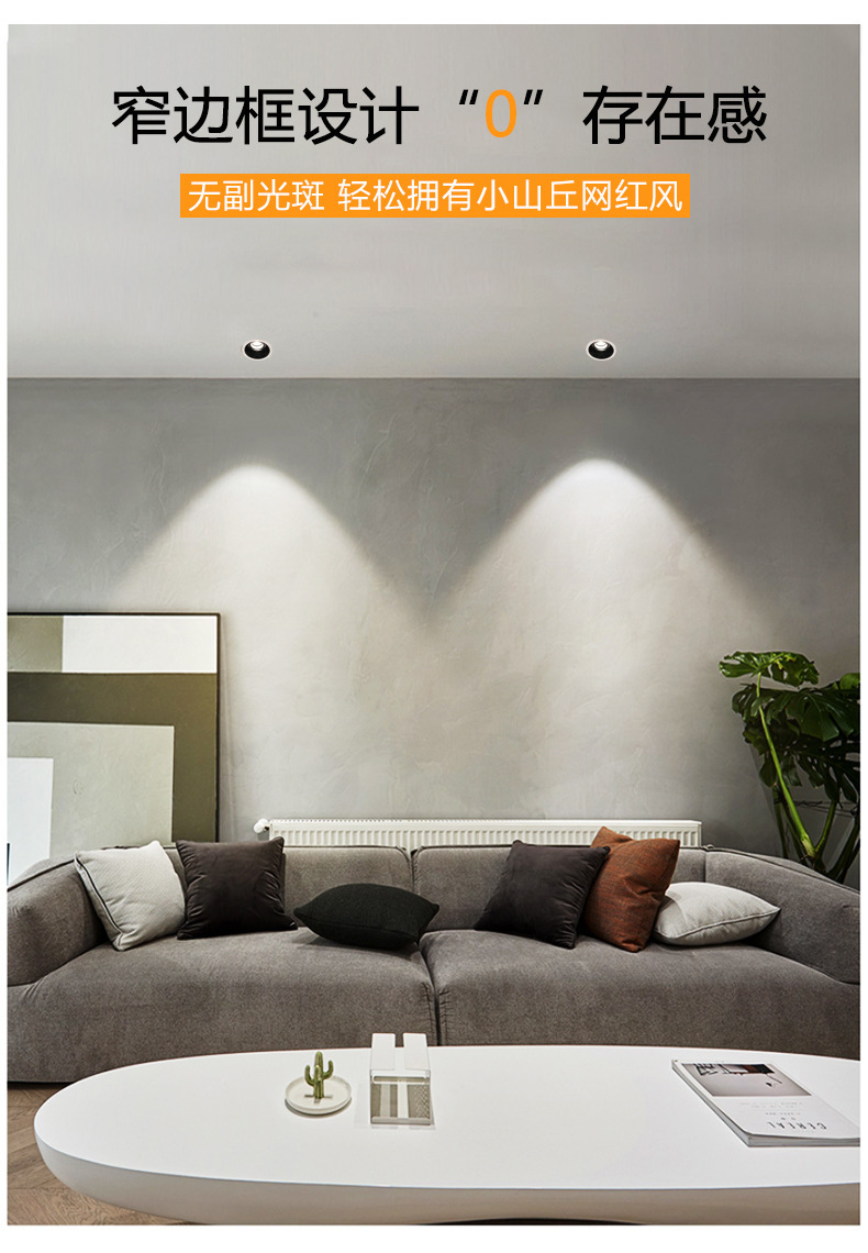 三松明装筒型ダウンライト 防眩24 ° 穴を開ける必要のないホテルのリビングルーム、通路、廊下用LEDシーリングスポットライト