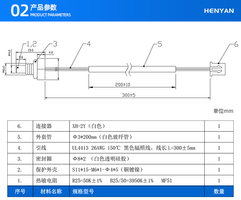 感温部品 ± 1 ℃ 耐高温サーミスタ温度プローブ給湯器壁掛炉NTC温度センサ