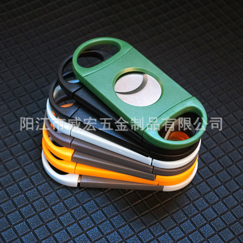 現品の卸売りのシガーのはさみのメーカーの黒色のプラスチックの双刃のシガーのシガーのシガーの煙具の楕円形のシガーのはさみ