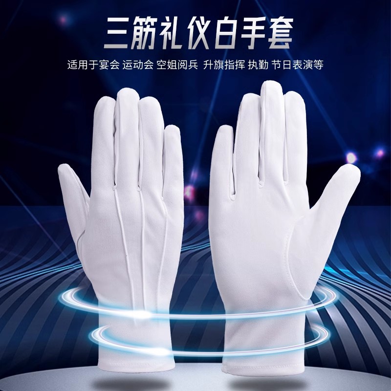 高级礼仪手套,三筋涤纶作业手套,长约23厘米,弹力好,做工精细,适合各种礼仪场合.保安.工作.劳防.及警察,部队,汽车4S店,汽车摩托车驾驶等使用,亲.只要您用了这款手套以后.别的手套再也不想用了.不信您试试.