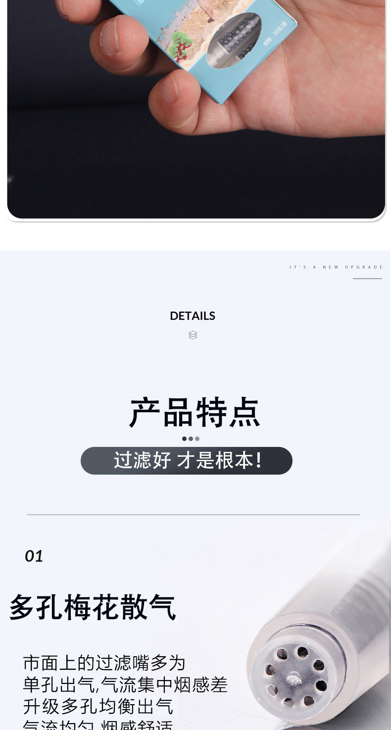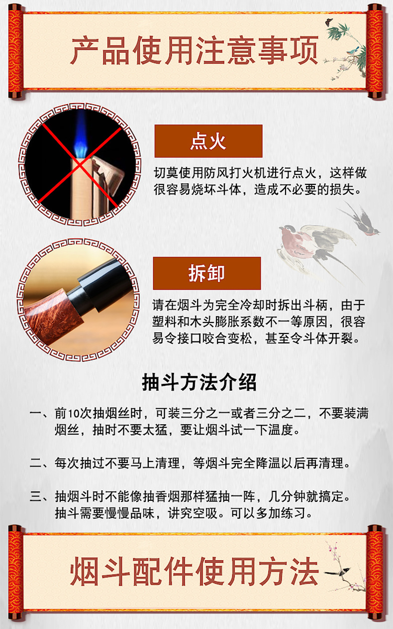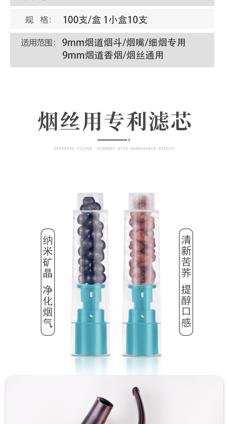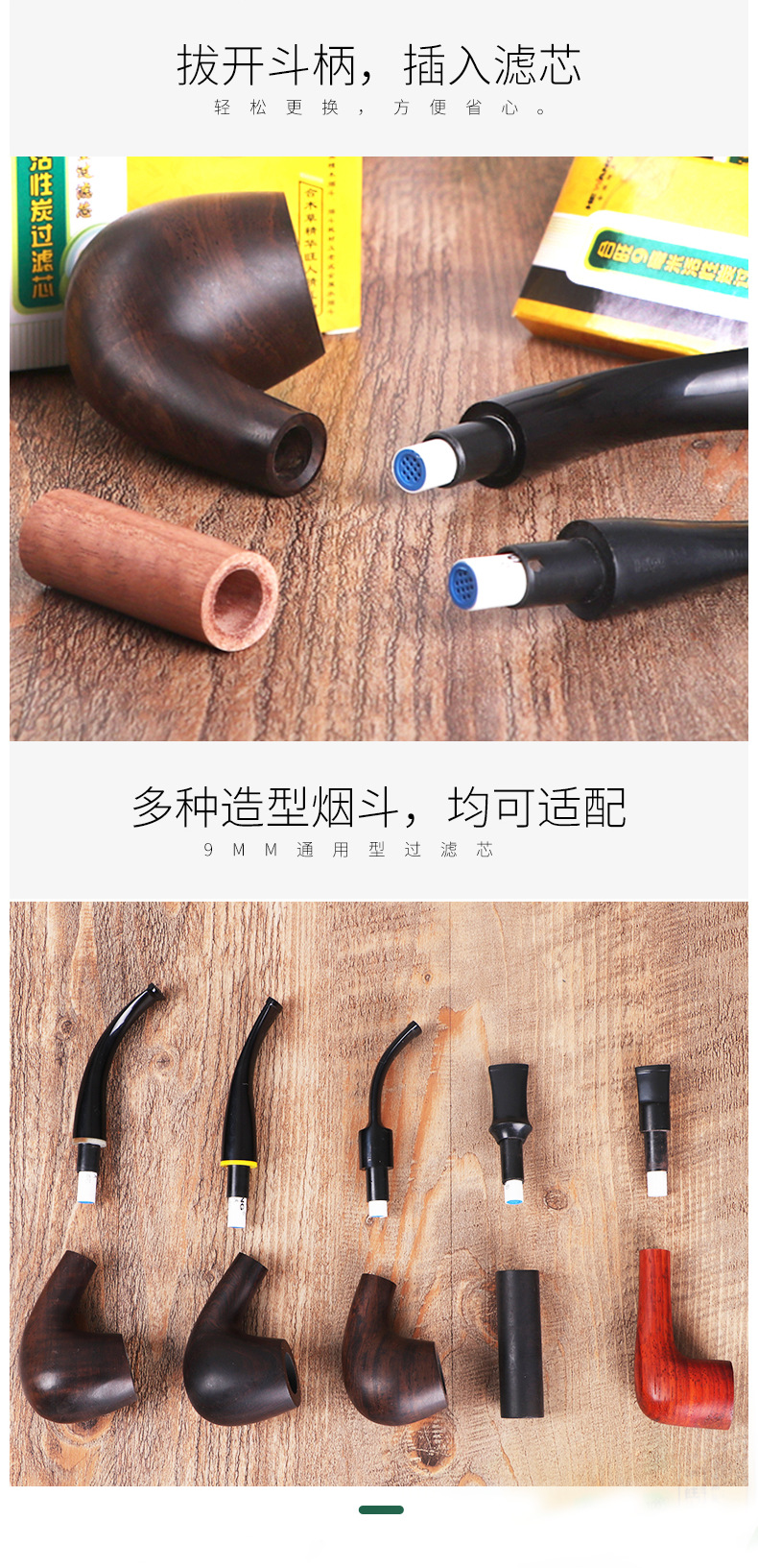 【适用范围】可以过滤烟丝燃烧过程中产生的焦油、水汽等物质,避免抽烟斗时产生积水而发出不雅的声音,建议抽3-6斗烟更换一支。