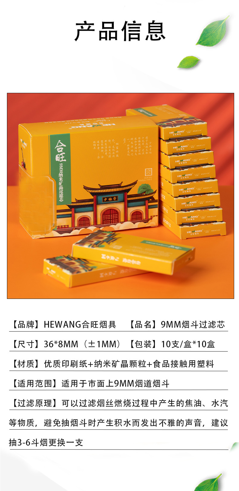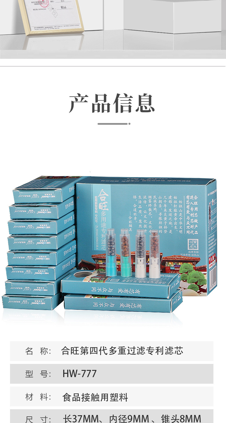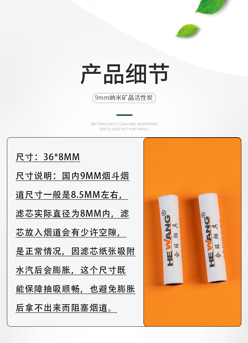 合旺专利款滤芯只适合合旺标准9MM烟道的烟嘴和烟斗;选购请注意区分。(专利滤芯为实用新型专利产品,型号HW-777,专利号:ZL201822094338.4)