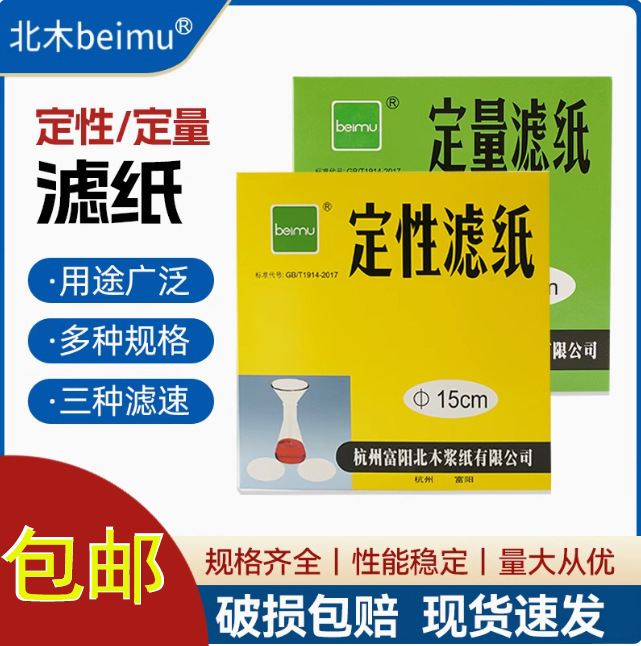 产品中速和快速价格是一样的,亲需要哪个速度的标注一下 使用方法: 在实验中使用滤纸多连同过滤漏斗及布氏漏斗等仪器一同使用。使用前需把滤纸折成合适的形状,常见的折法是把滤纸折成类似花的形状。滤纸的折迭程度愈高,能提供的表面面积亦愈高,过滤效果亦愈好,但要注意不要过度折迭而导致滤纸破裂。把引流的玻璃棒放在多层滤纸上,用力均匀,避免滤纸破坏。 具体操作过程 1.将过滤纸对折,连续两次,叠成90°圆心角形状。漏斗 2.把叠好的滤纸,按一侧三层,另一侧一层打开,成漏斗状。 3.把漏斗状滤纸装入漏斗内,滤纸边要低于漏斗边,向漏斗口内倒一些清水,使浸湿的滤纸与漏斗内壁贴靠,再把余下的清水倒掉,待用。 4.将装好滤纸的漏斗安放在过滤用的漏斗架上,(如铁架台的圆环上),在漏斗颈下放接纳过滤液的烧杯或试管,并使漏斗颈尖端靠于接纳容器的壁上。 5.向漏斗里注入需要过滤的液体时,右手持盛液烧杯,左手持玻璃棒,玻璃棒下端靠紧漏斗三层低一面上,使杯口紧贴玻璃棒,待滤液体沿杯口流出,再沿玻璃棒倾斜之势,顺势流入漏斗内,流到漏斗里的液体,液面不能超过漏斗中滤纸的高度。 6.当液体经过滤纸,沿漏斗颈流下时,要检查一下液体是否沿杯壁顺流而下,注到杯底。否则应该移动烧杯或旋转漏斗,使漏斗尖端与烧杯壁贴牢,就可以使液体顺杯壁下流了。