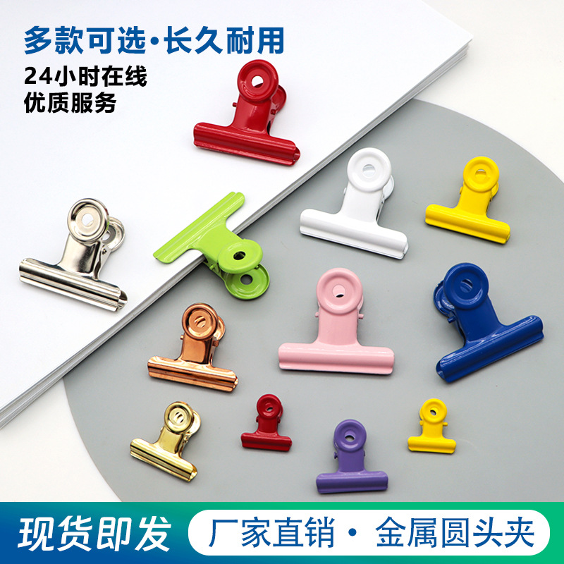 现货供应3cm糖果粉色烤漆彩色票夹|食品封口办公彩色圆头金属夹子