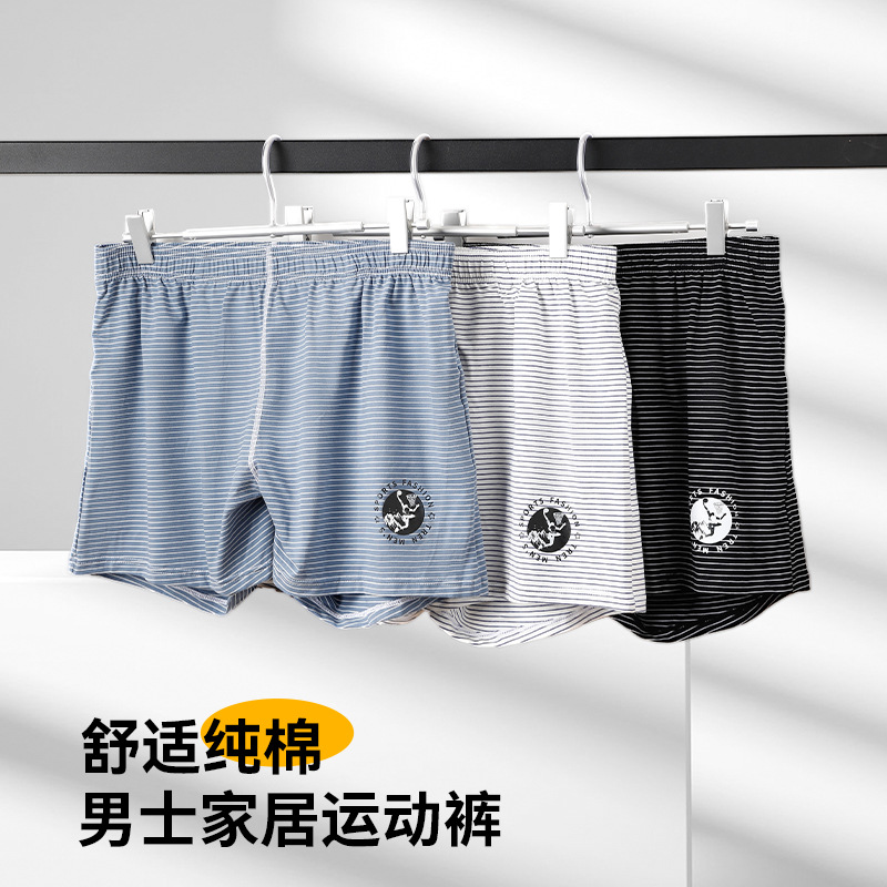 男士阿罗裤纯棉内裤透气宽松条纹短裤学生简约时尚家居裤可外穿