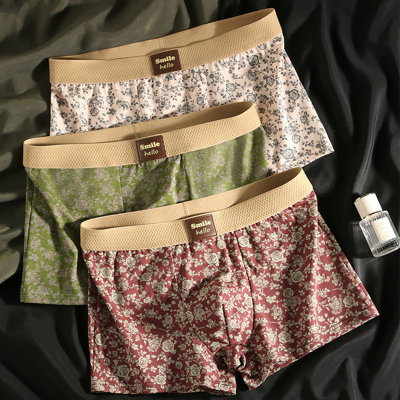 男士内裤男纯棉四角裤秋冬青少年男生中腰时尚潮流印花平角短裤头