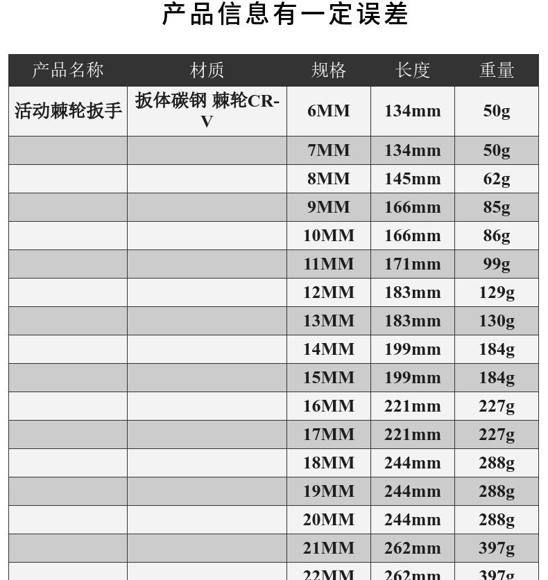 浙江メーカー直供8-22クロムバナジウム鋼180度活動ラチェットレンチセット活頭両用ラチェットレンチ