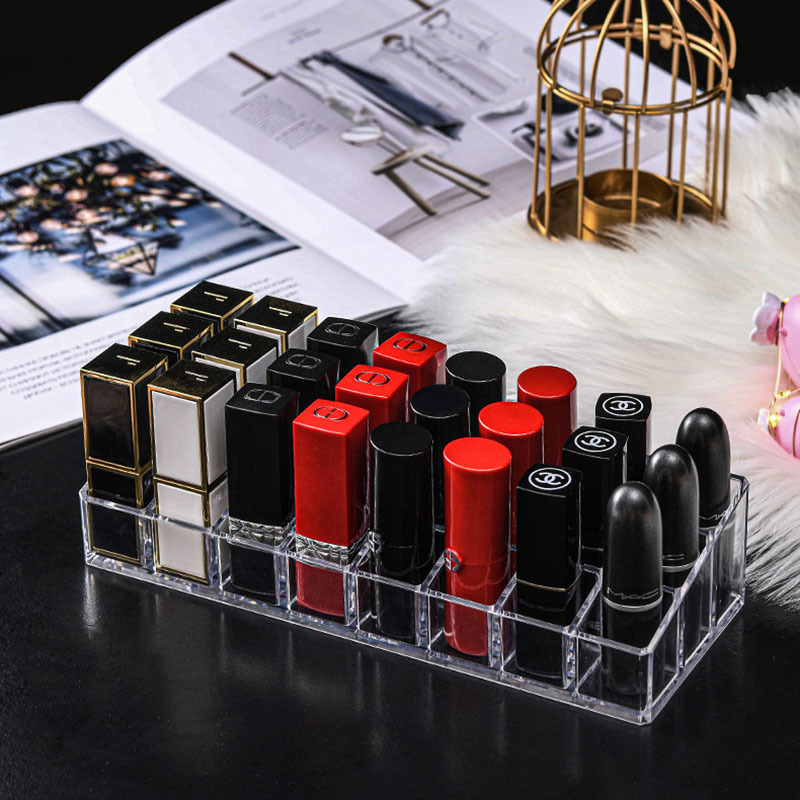 【共12格孔,每个孔的尺寸是2.6x2.6cm,可以放TF带包的口红】