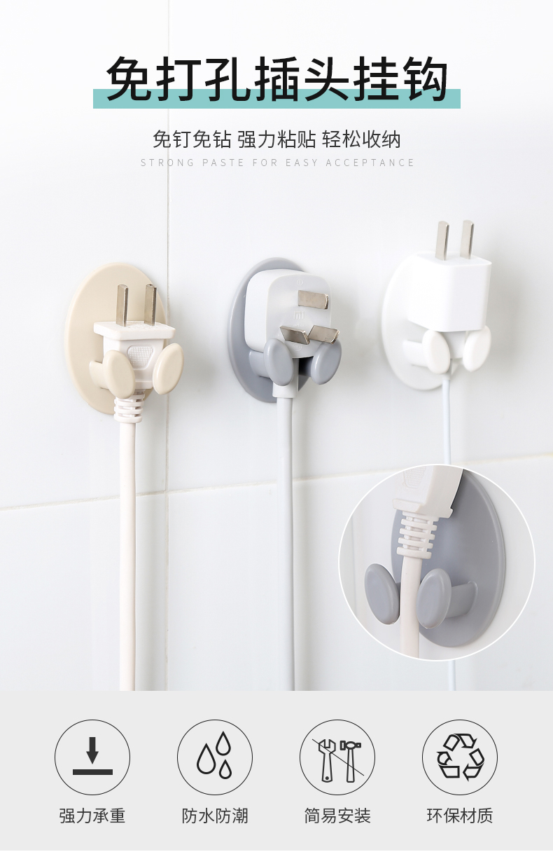 プラグフック壁面ビスコースキッチン掛け電線収納フック穴なし吸盤電源プラグ収納フック